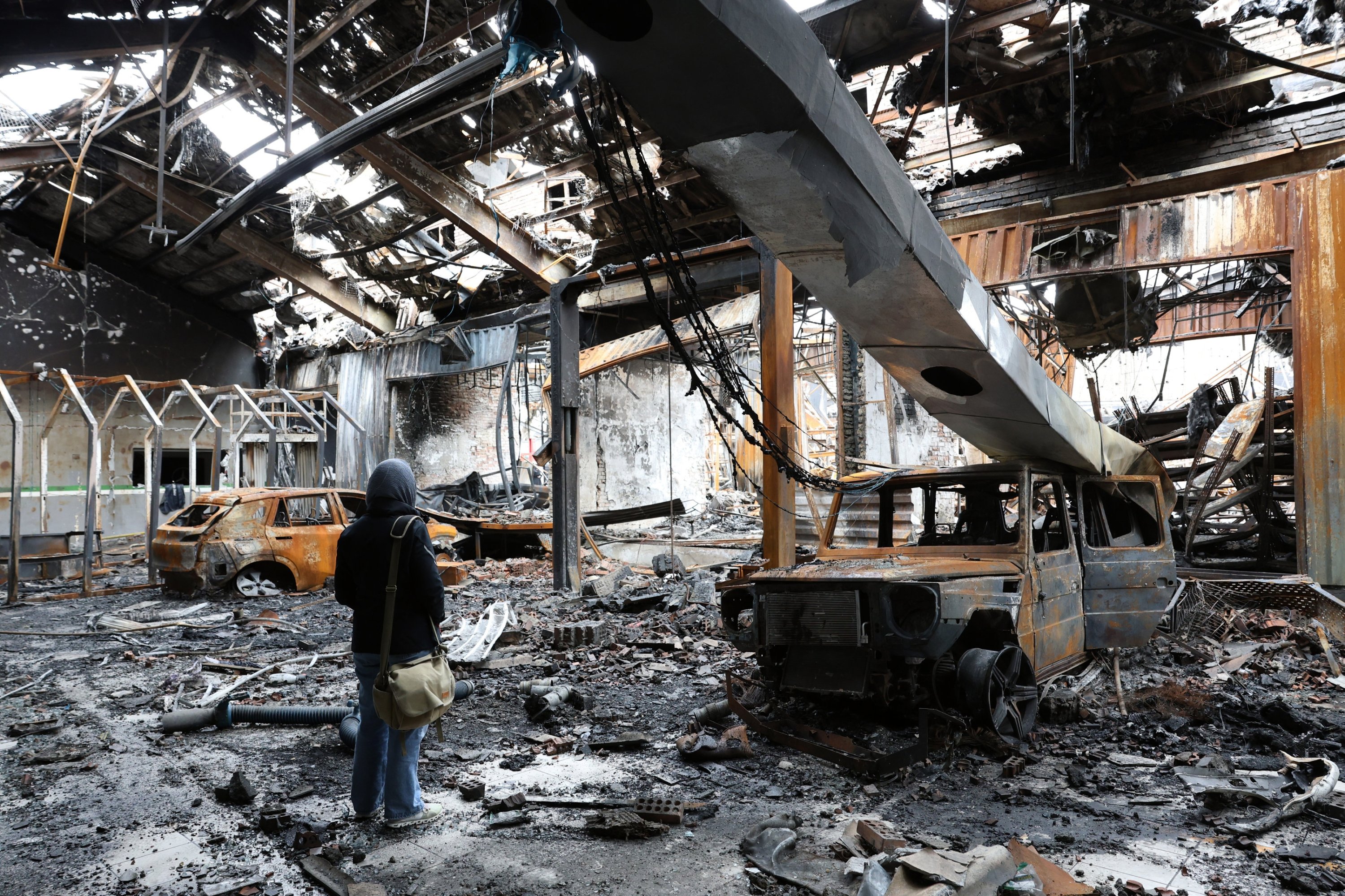 Civilian areas, including a school and sports hall, are hit, causing mass casualties.