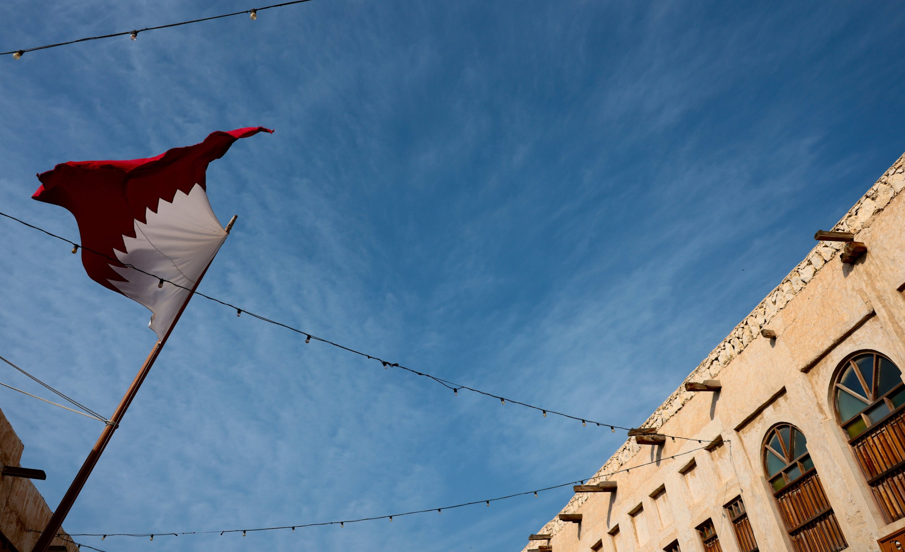 A Qatari national flag is seen at the old town city center in Doha, Qatar, March 1, 2026. (EPA Photo)