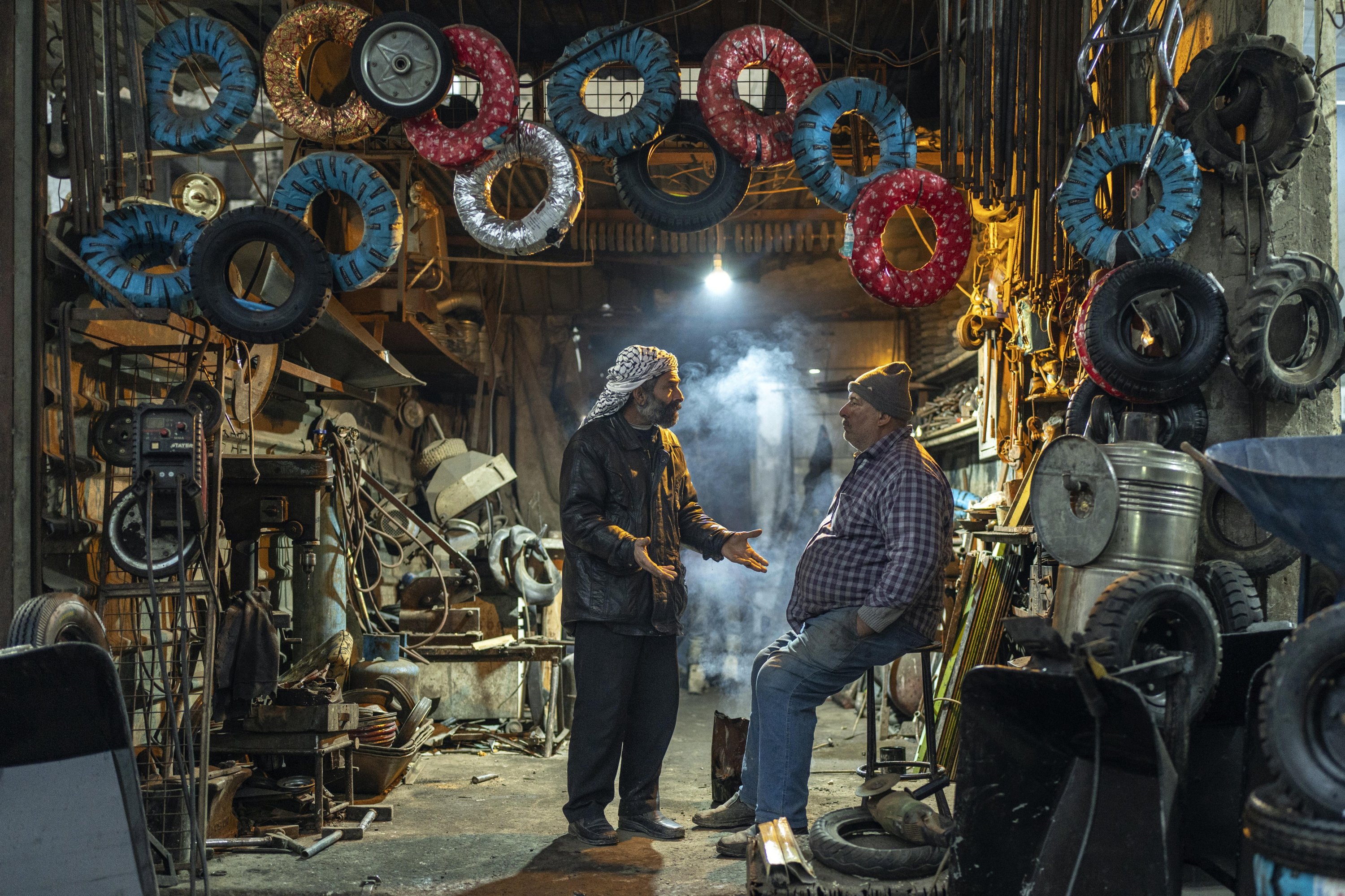 Workers at a tire shop wait for customers in Douma, on the outskirts of Damascus, Syria, Dec. 29, 2024 (AP Photo)