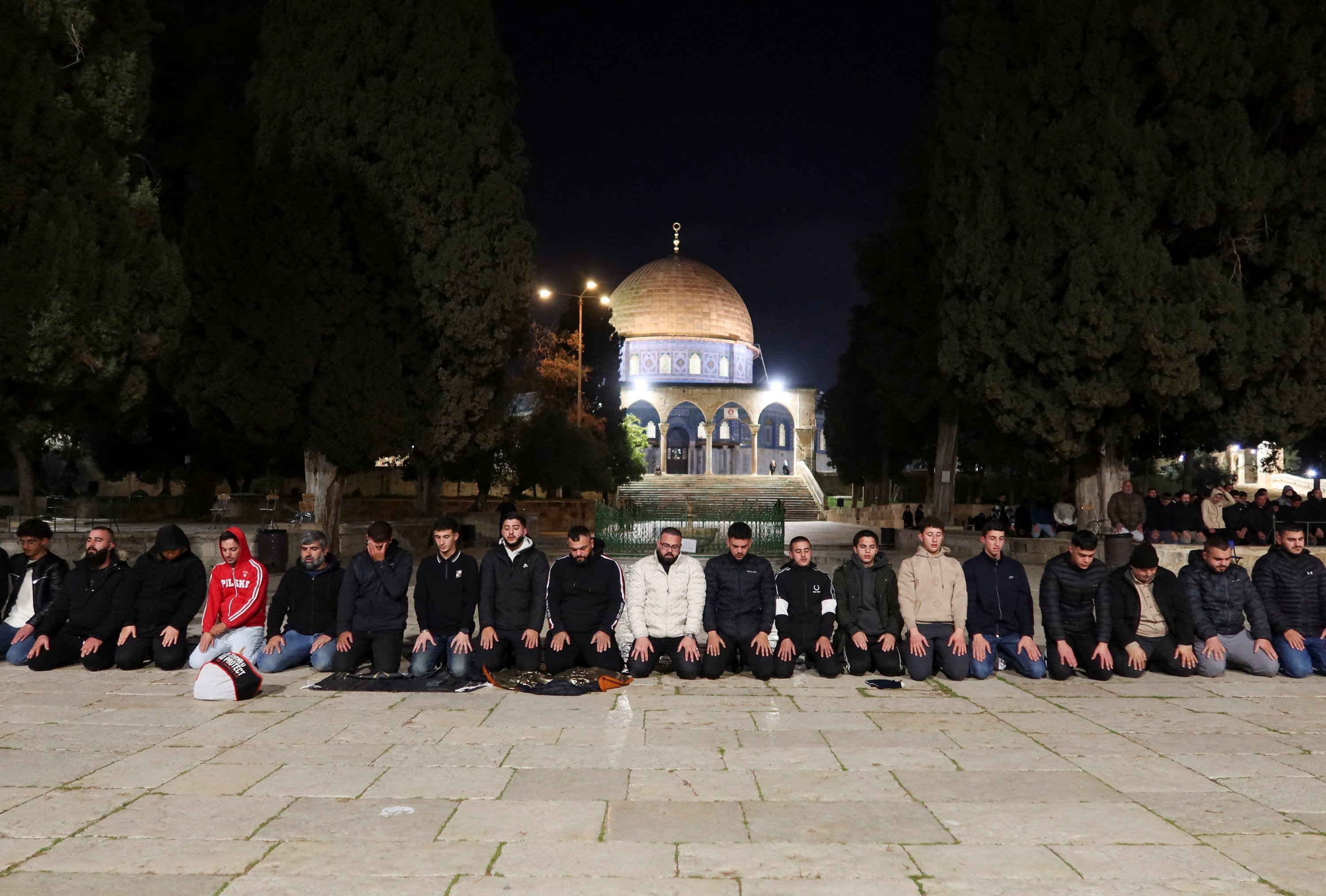 As the gates were opened with the morning call to prayer, large numbers of worshippers flocked to the site, with many seen breaking into tears and performing prostrations in the mosque’s courtyards.